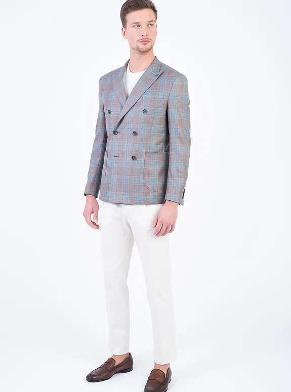 Kárované dvouřadé sako