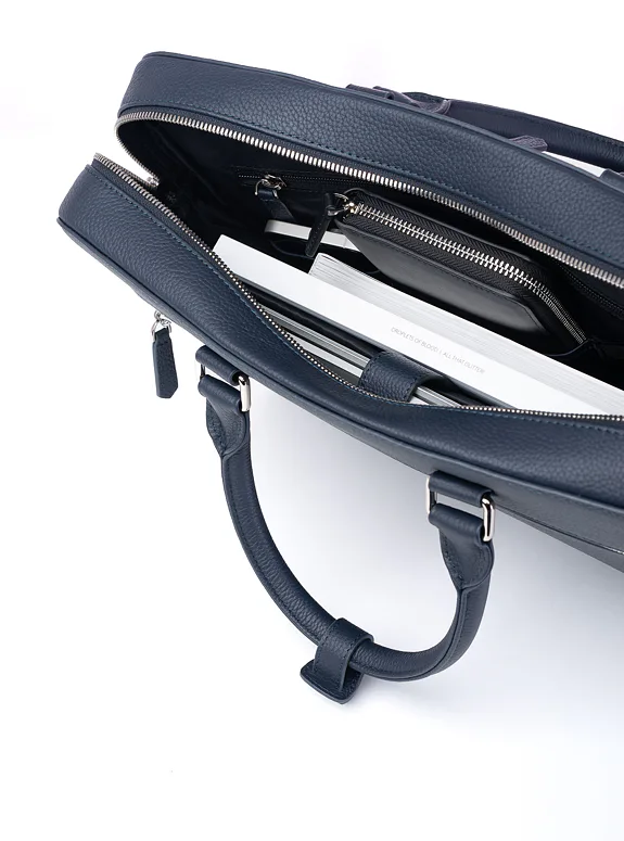 Podtrhněte svůj elegantní styl s touto modrou taškou z přírodní kůže, která kombinuje praktičnost s luxusem, ať už jde o formální setkání nebo profesionální události.