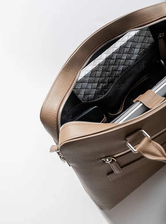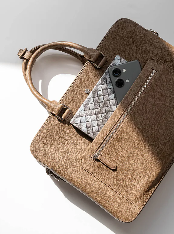 Podtrhněte svůj elegantní styl s touto hnědou taškou z přírodní kůže, která kombinuje praktičnost s luxusem, ať už jde o formální setkání nebo profesionální události.