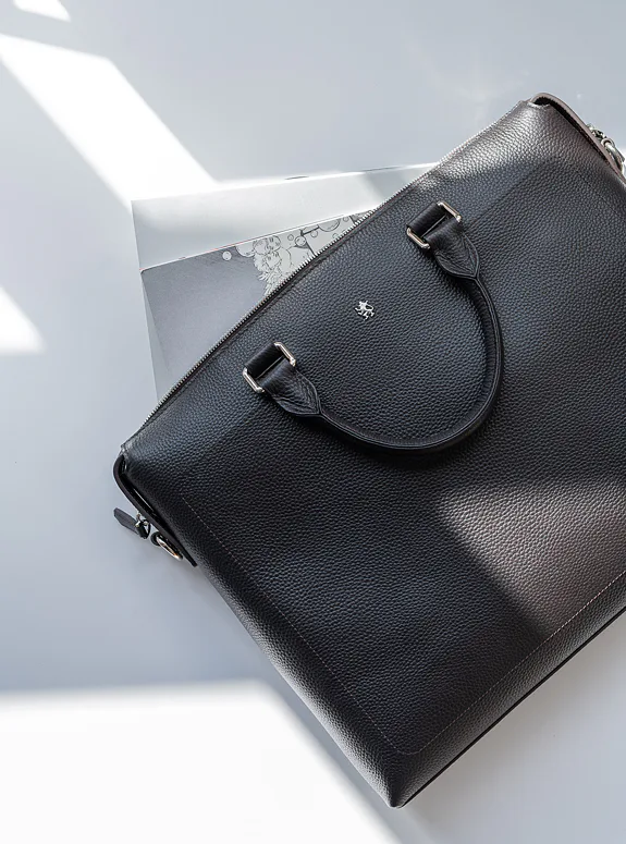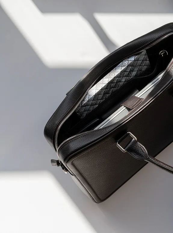 Podtrhněte svůj elegantní styl s touto tmavě hnědou taškou z přírodní kůže, která kombinuje praktičnost s luxusem. Ať už jde o formální setkání nebo profesionální události.